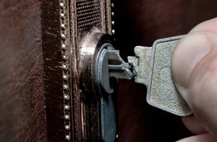 However, if the key breaks while turning, complications may arise: the keyhole will need to be reset, which is difficult if the broken piece is deeply lodged.